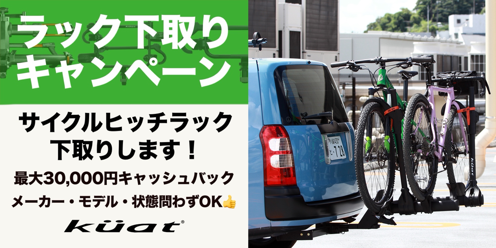 ※当キャンペーンは、Kuatラックをご購入頂いた方が対象です。中古ラックの買取のみは行なっておりませんのでご注意ください。